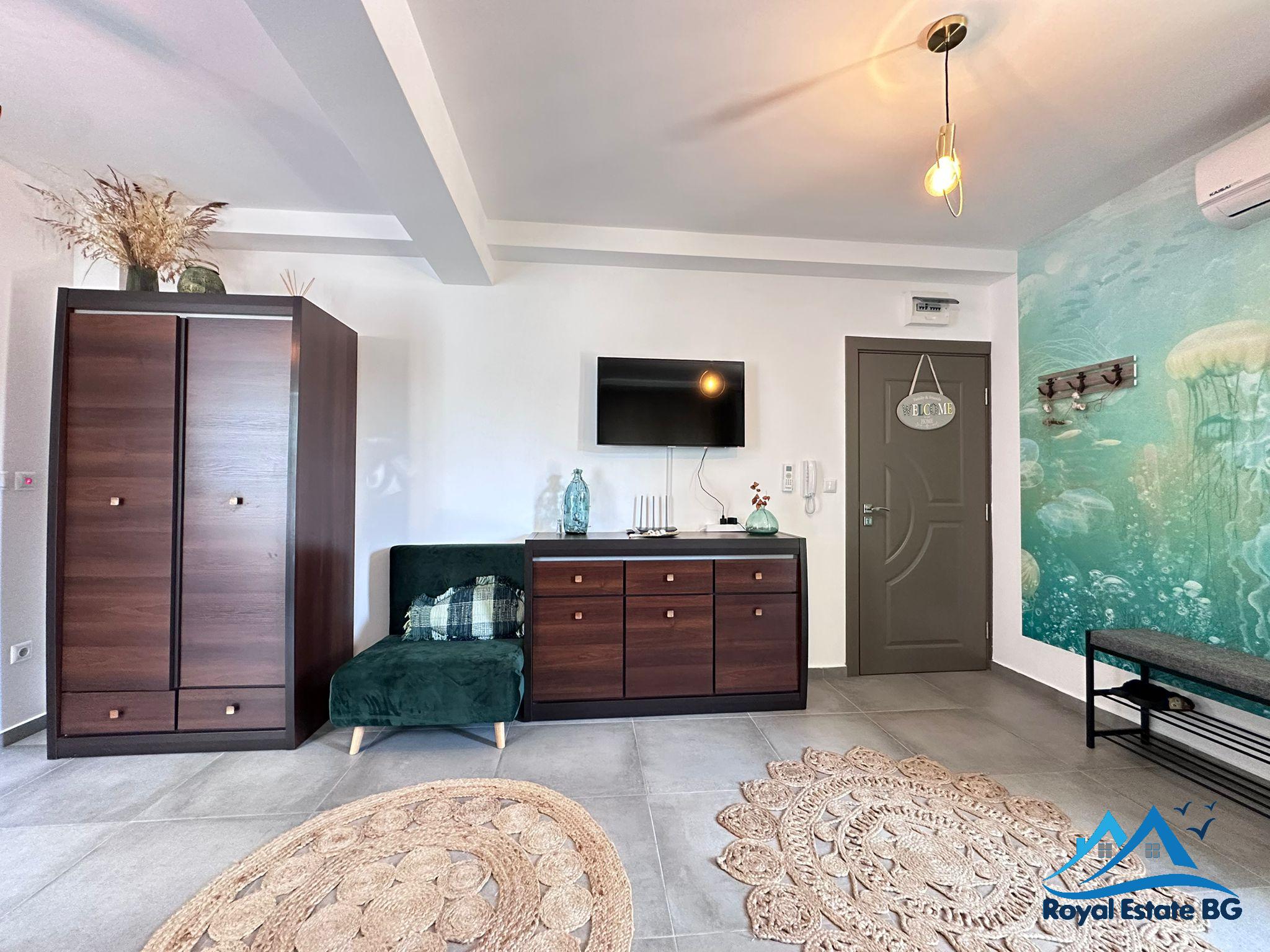 Na prodej je unikátní studiový apartmán v prestižním komplexu Mery Beach ve Sveti Vlas. Nemovitost se nachází pouhých 50 metrů od pláže, což z ní činí ideální volbu jak pro bydlení, tak pro investici k pronájmu.