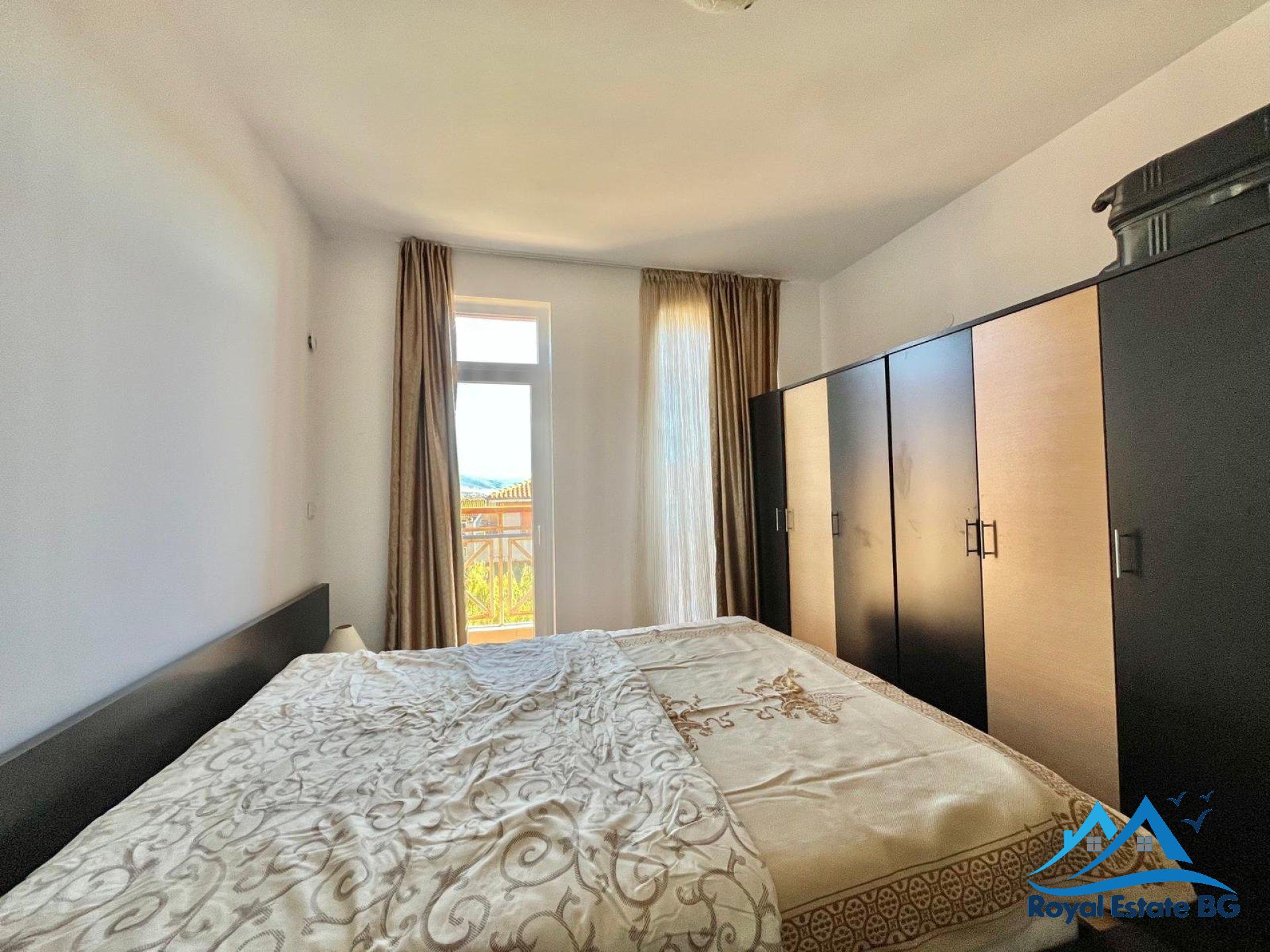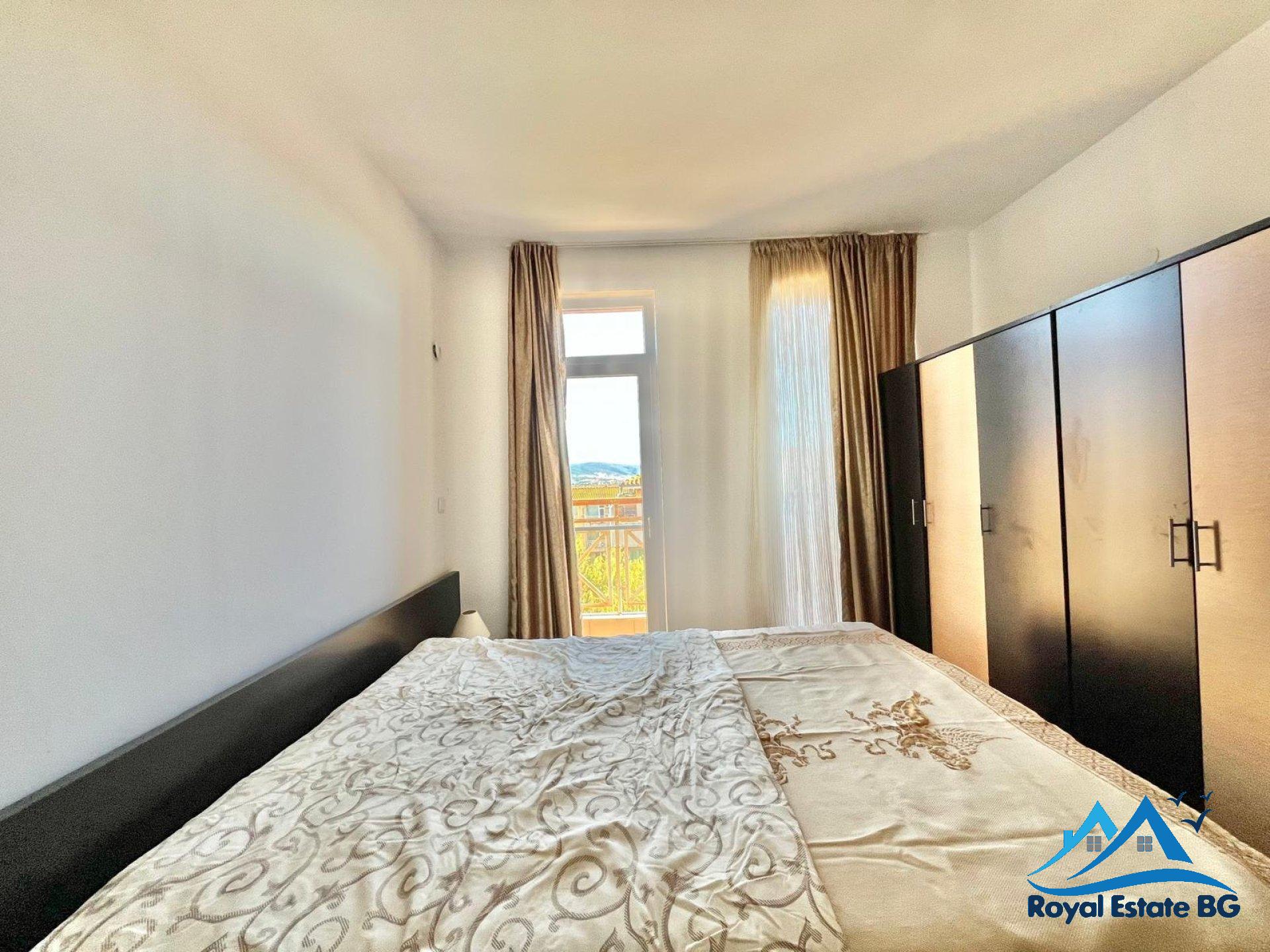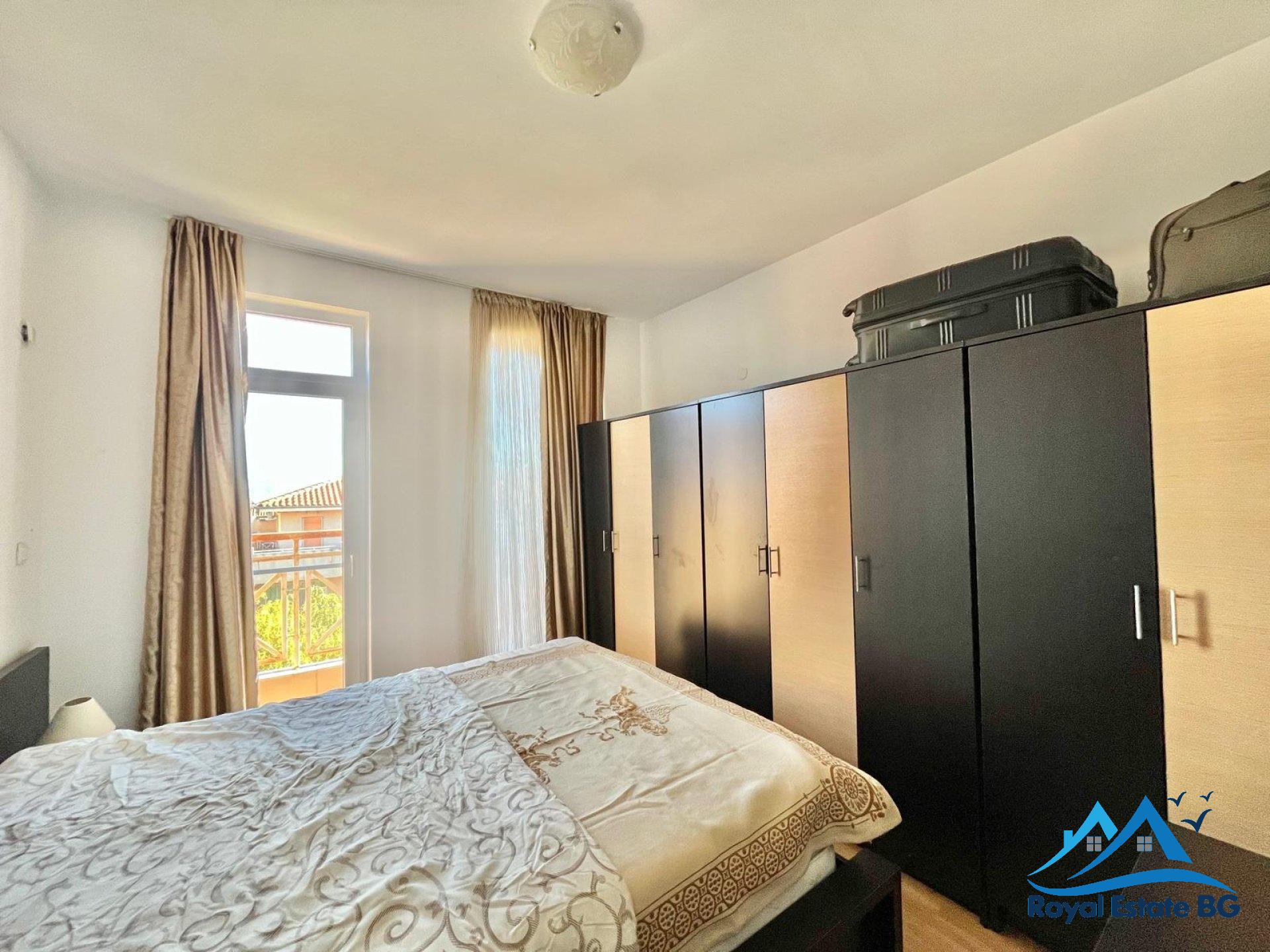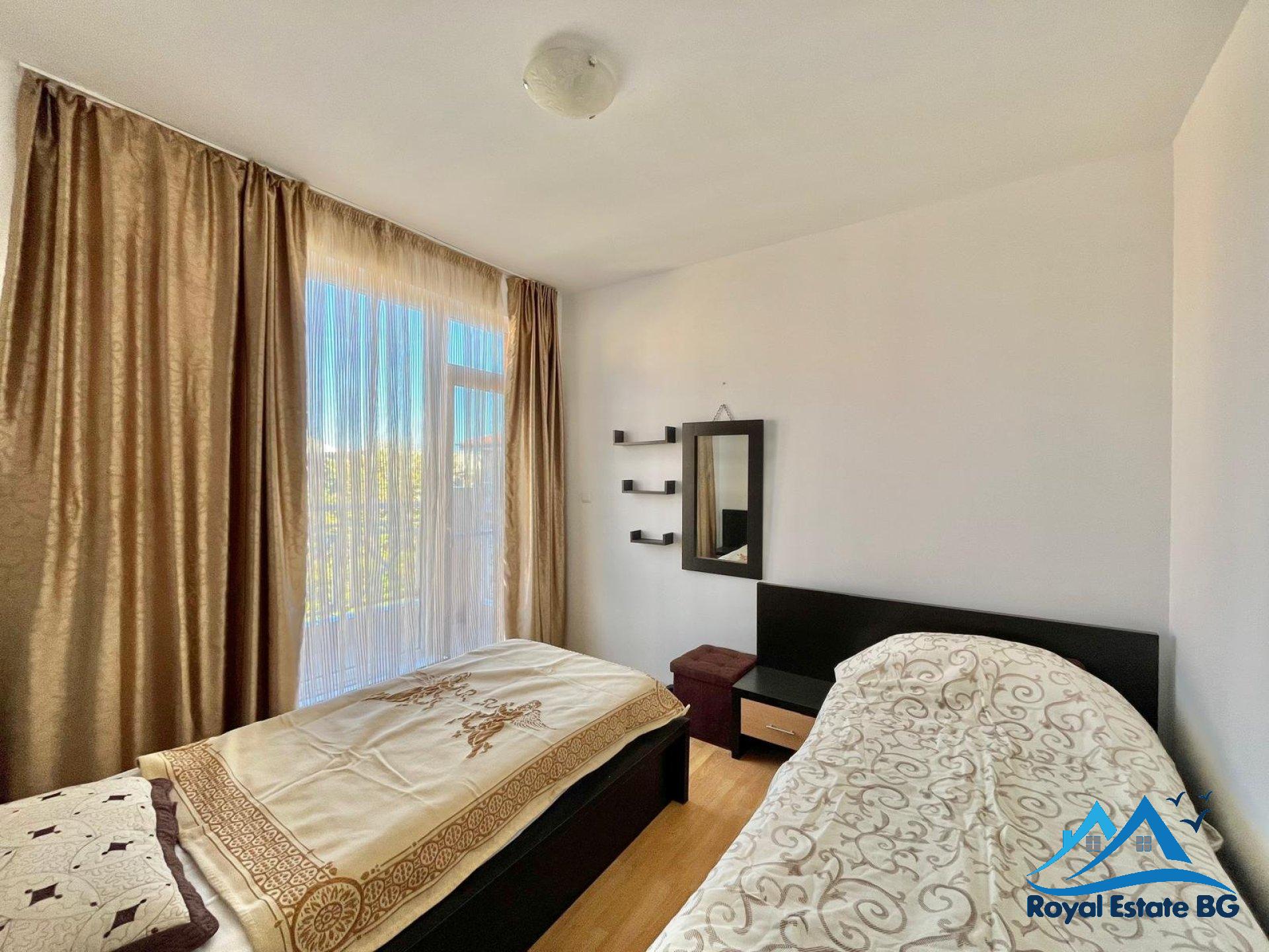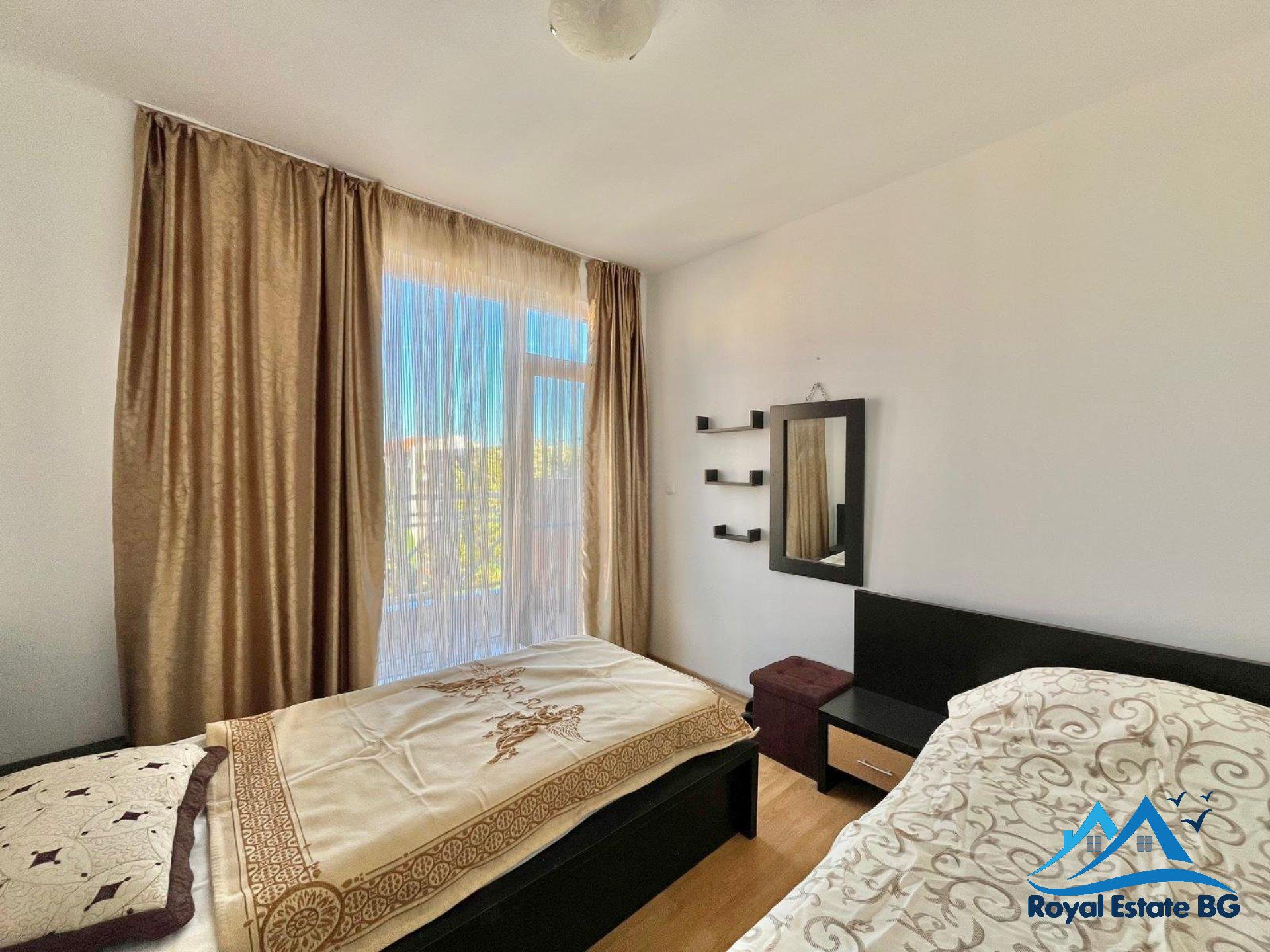 Oferujemy na sprzedaż w pełni umeblowany apartament z dwiema sypialniami o powierzchni 80 mkw, położony na 4 piętrze w dobrze utrzymanym i popularnym kompleksie Sunny Day 6, zaledwie 2 km od morza i kilka minut jazdy samochodem od centrum kurortu Słoneczny Brzeg.