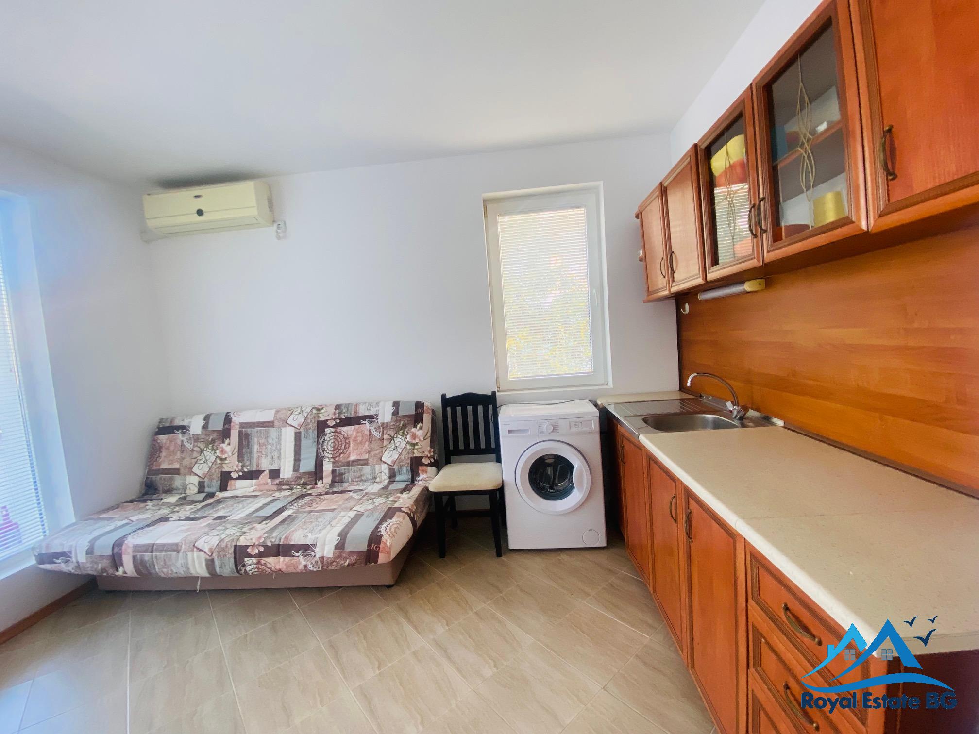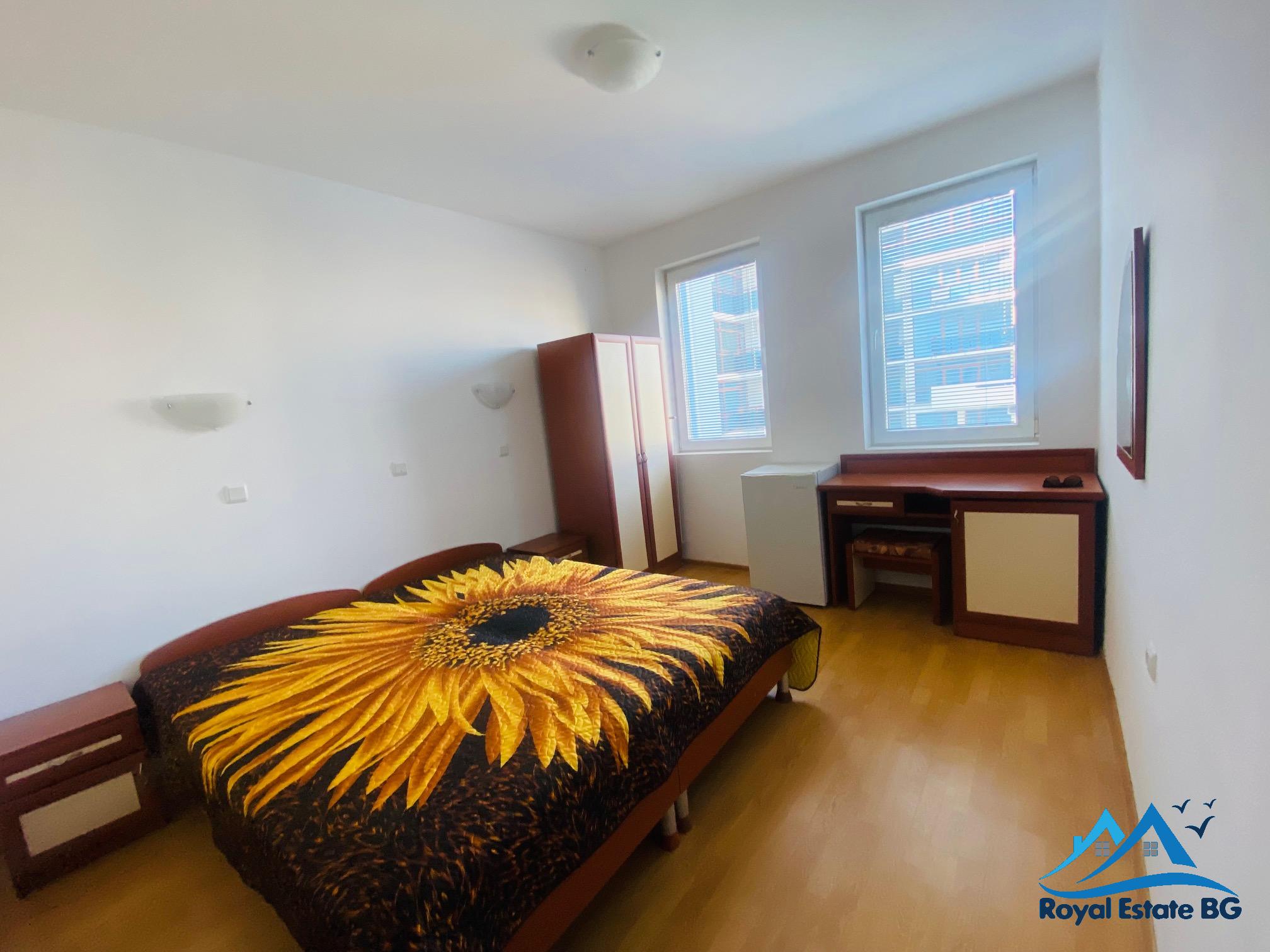 Oferujemy na sprzedaż jasny i przytulny apartament z jedną sypialnią o powierzchni 59 m2, położony na trzecim piętrze w dobrze utrzymanym kompleksie mieszkalnym „Laguna 1”, w kurorcie Słoneczny Brzeg, gmina Nessebar.