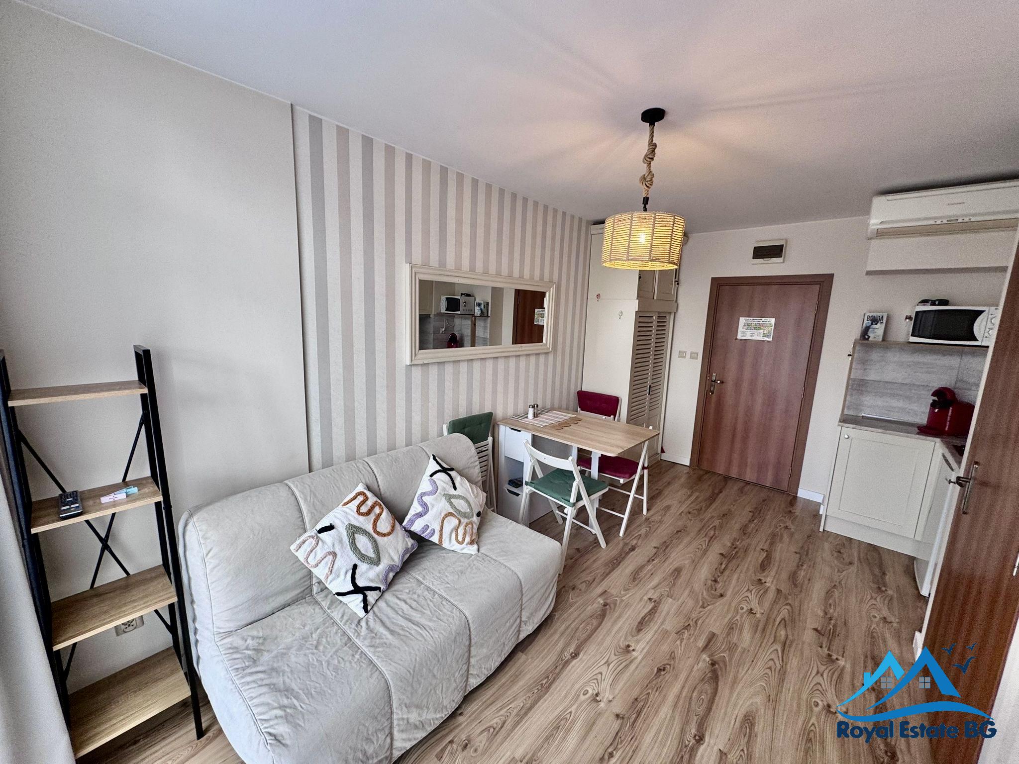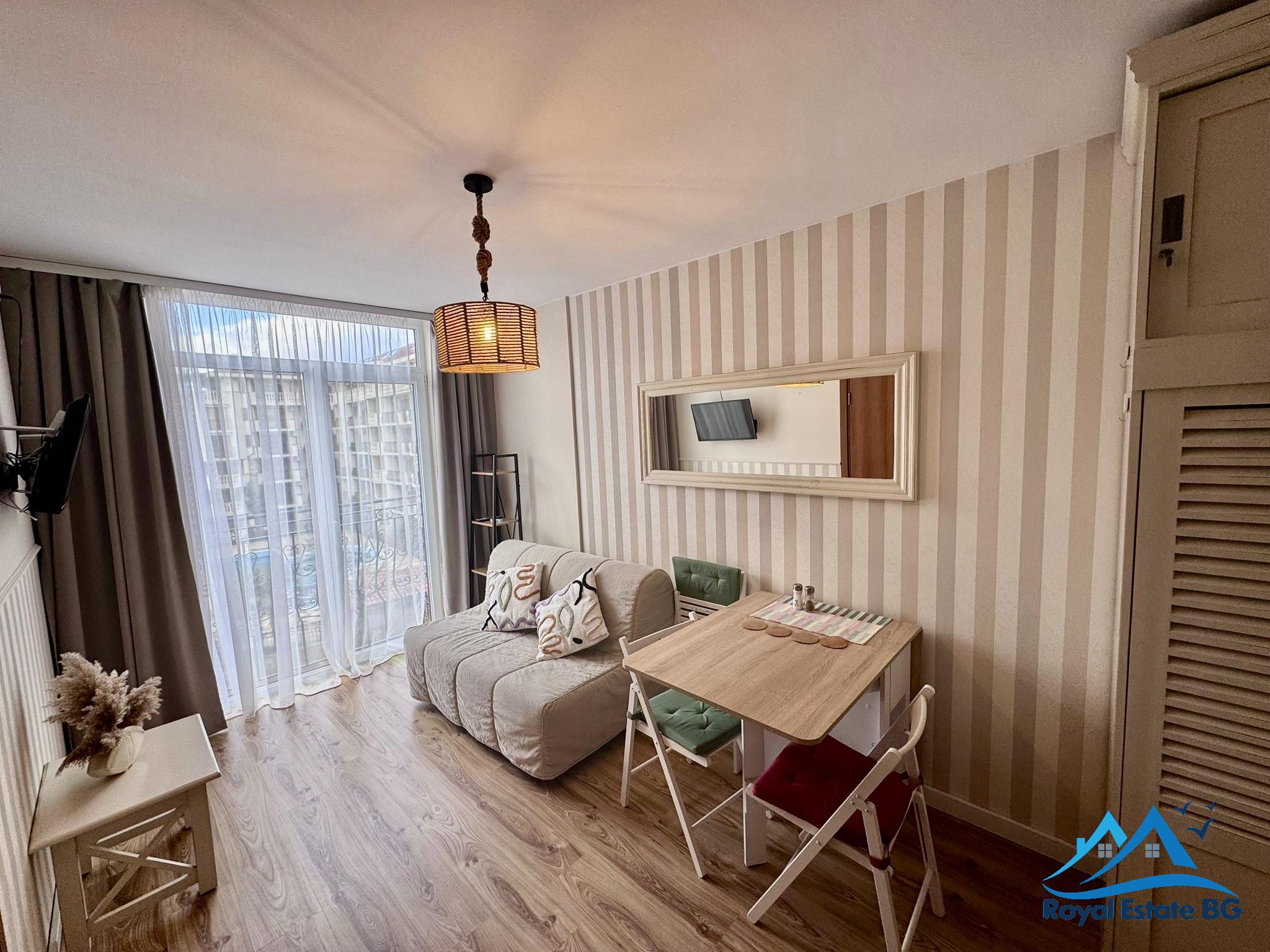 Prezentujemy przytulne, 2-pokojowe mieszkanie w Słonecznym Brzegu o powierzchni 34 m², położone na 3. piętrze, z widokiem na miasto. Lokal jest w pełni umeblowany i gotowy do zamieszkania lub natychmiastowego wynajmu.