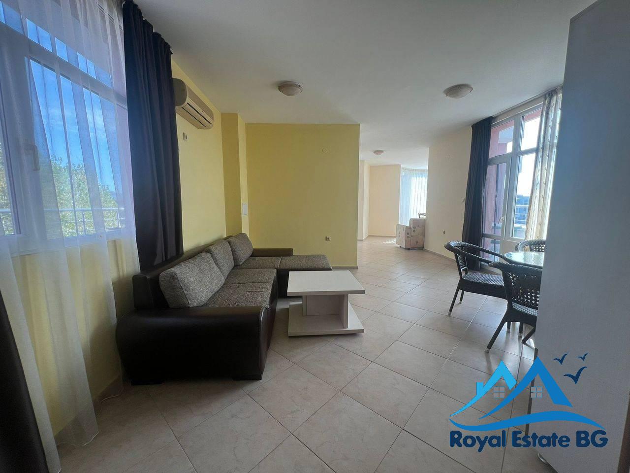Предлагаме на вашето внимание изключително просторен двустаен апартамент с обща площ от 162 m², разположен на 6-ти етаж в престижния комплекс Pyrop City в сърцето на Слънчев бряг. Това е една от най-изгодните оферти на пазара за имот с подобни параметри в района.