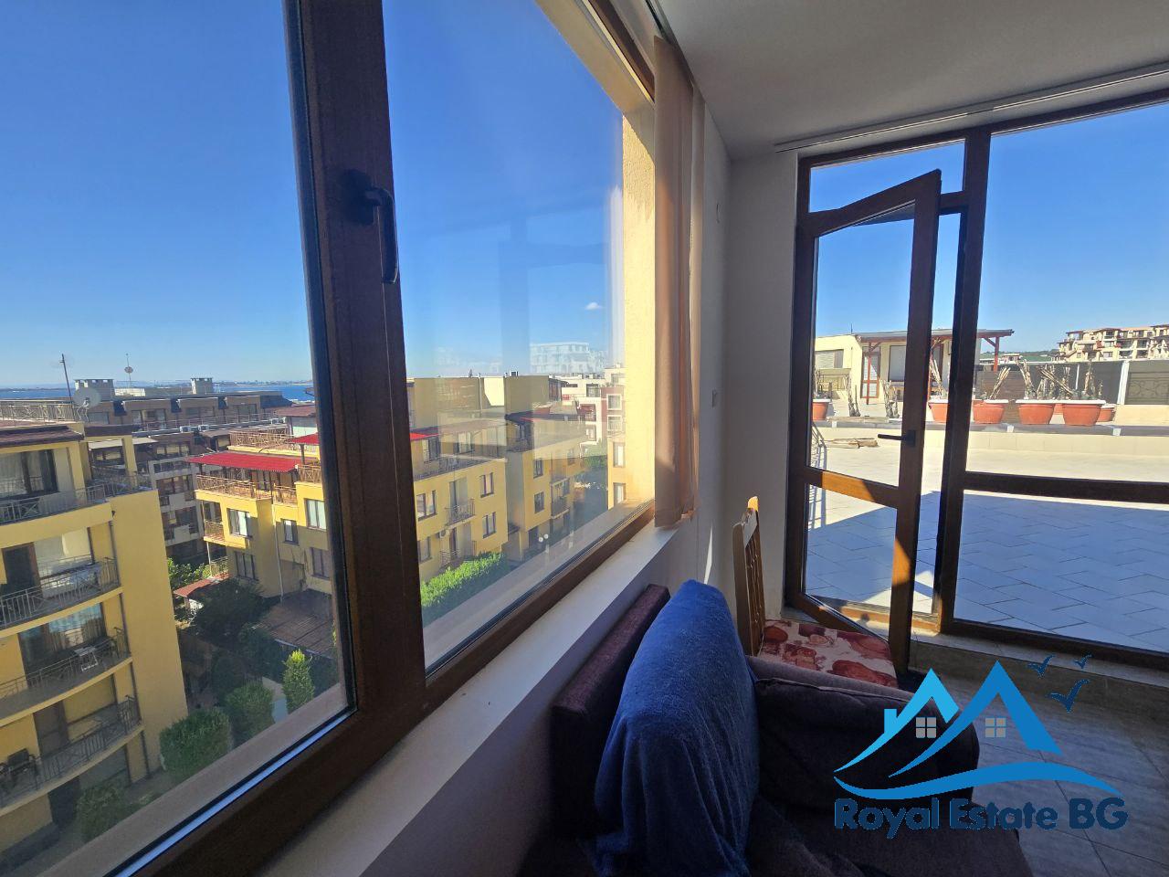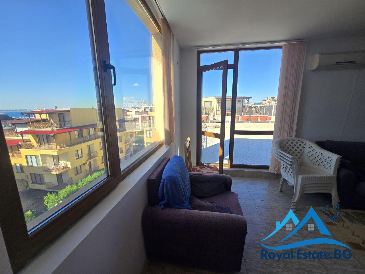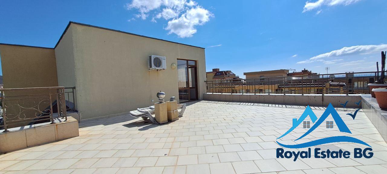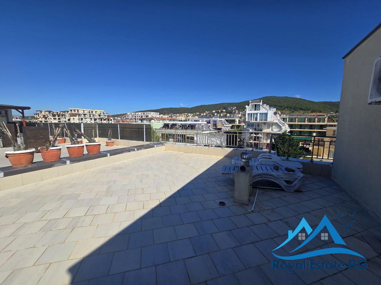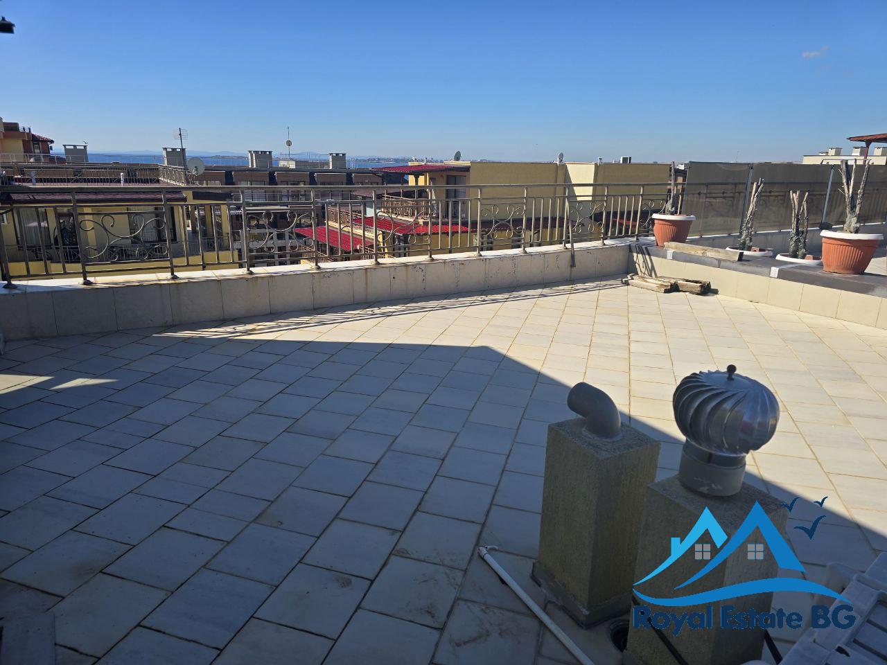 Предлагаме за продажба просторен и светъл двустаен апартамент, разположен на четвърти етаж в красивия и спокоен курортен град Свети Влас. Апартаментът е напълно обзаведен и готов за живеене или отдаване под наем, с обща площ 100 кв.м, включително бонус тераса 37 кв.м – идеално място за барбекю, слънчеви бани или отдих с панорамна гледка към морето.