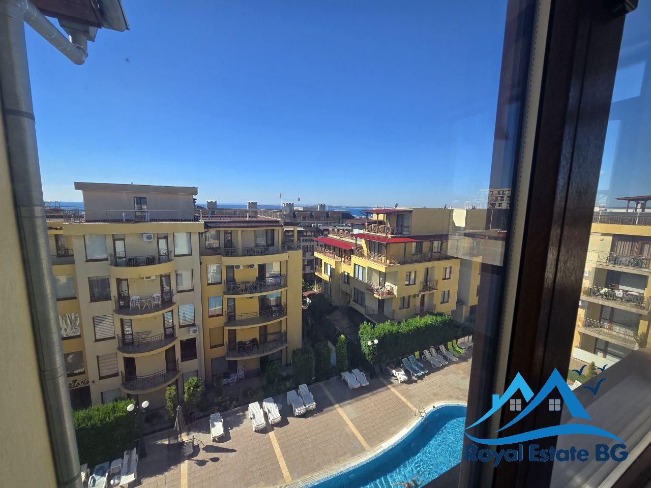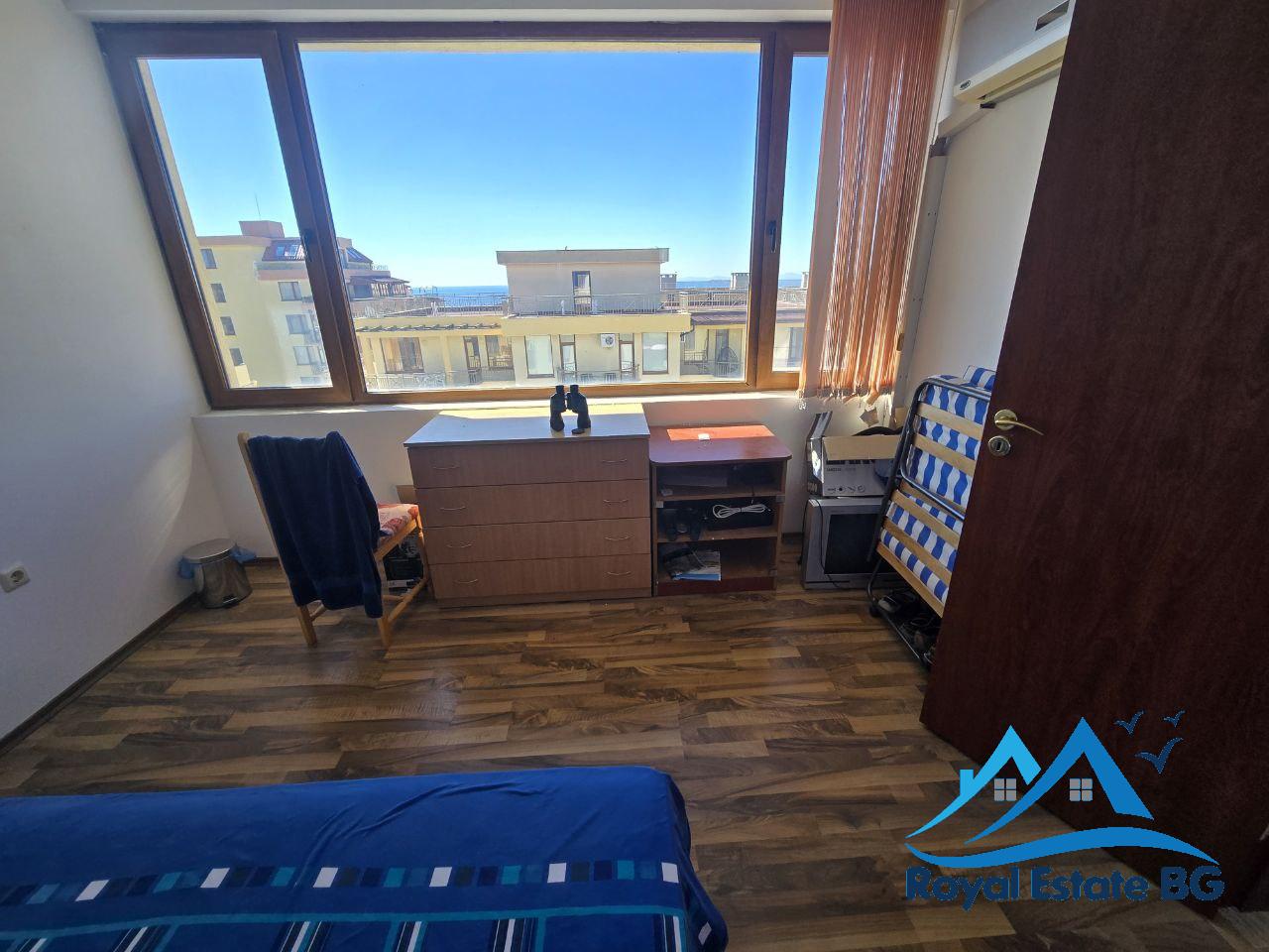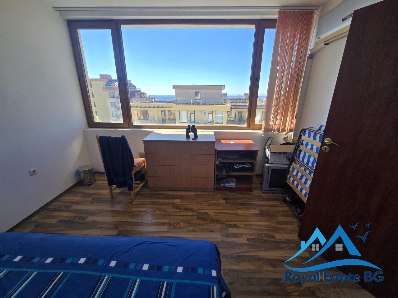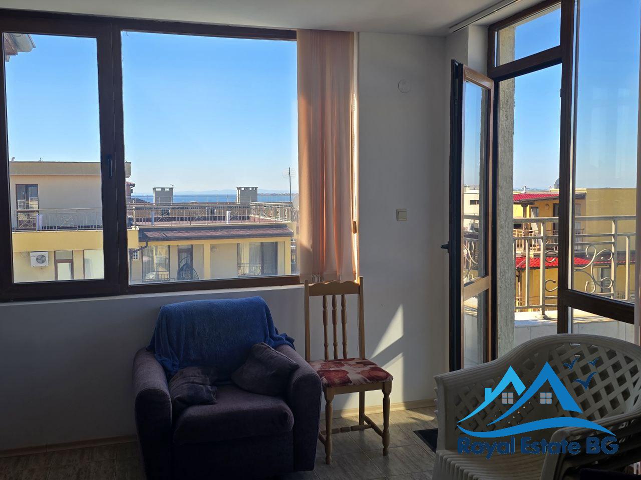 Предлагаме за продажба просторен и светъл двустаен апартамент, разположен на четвърти етаж в красивия и спокоен курортен град Свети Влас. Апартаментът е напълно обзаведен и готов за живеене или отдаване под наем, с обща площ 100 кв.м, включително бонус тераса 37 кв.м – идеално място за барбекю, слънчеви бани или отдих с панорамна гледка към морето.
