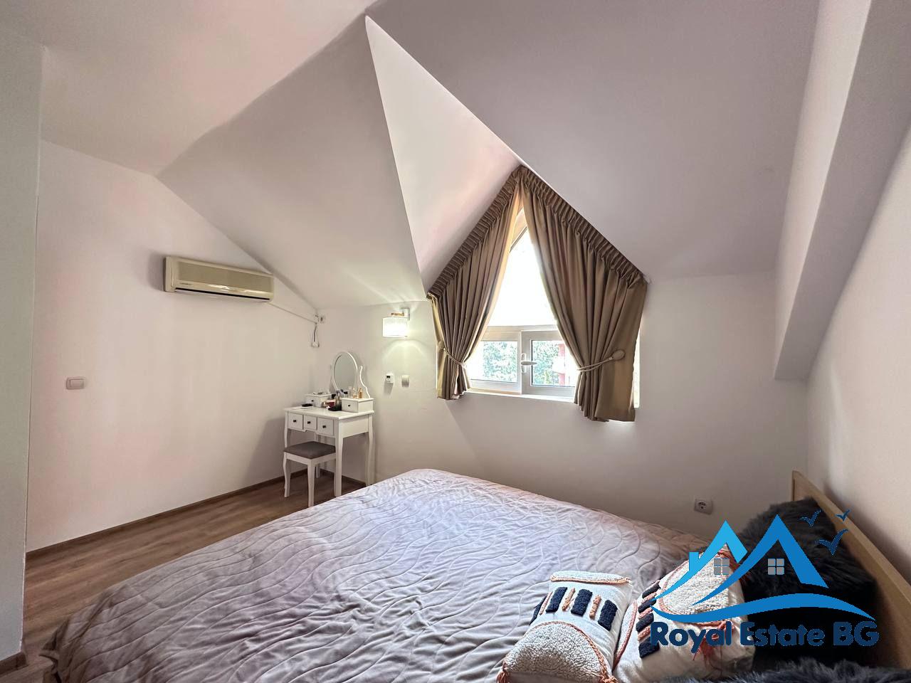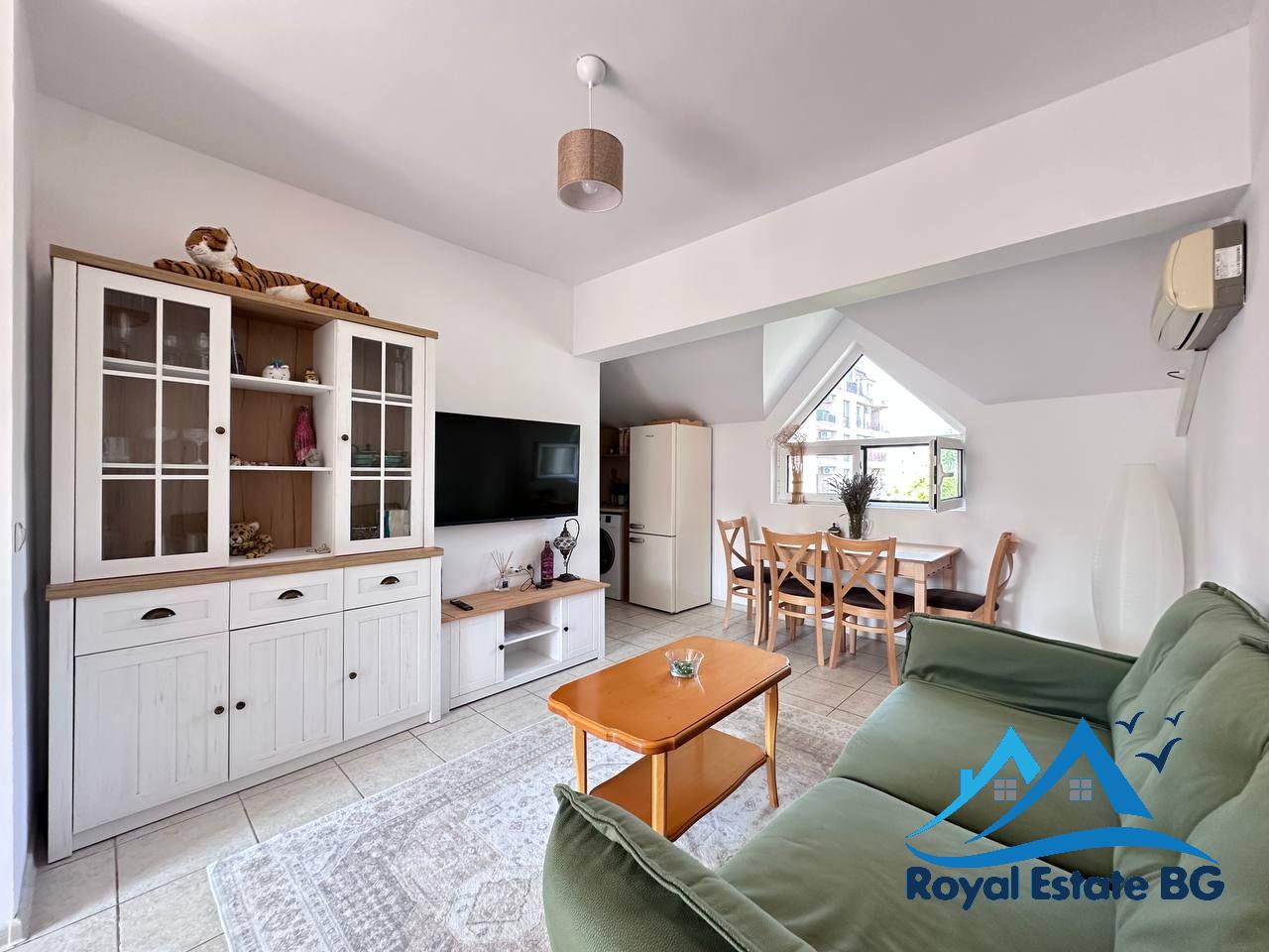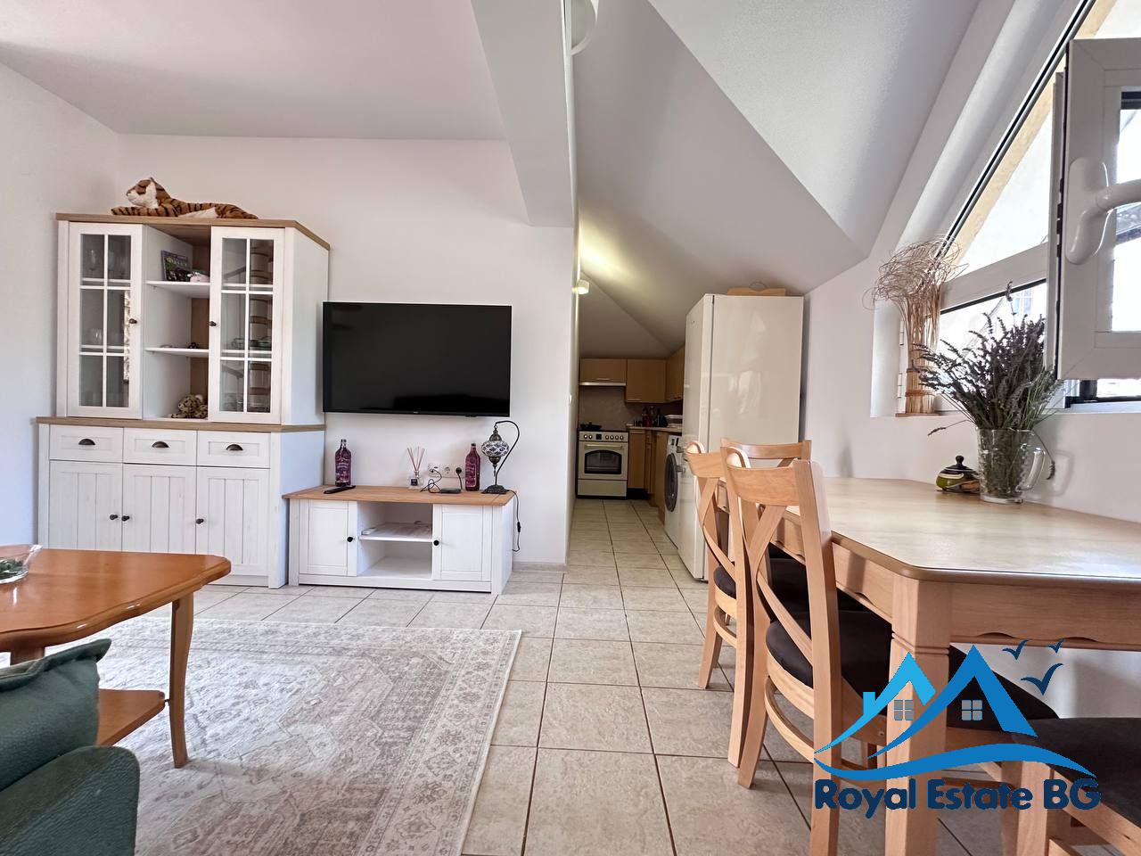 Апартаментът е напълно обзаведен, в отлично поддържано състояние и стилно оформен в модерен, функционален стил, характерен за интериорите тип Pinterest. Пространствата са светли, комфортни и подходящи както за сезонно ползване, така и за постоянно живеене.
