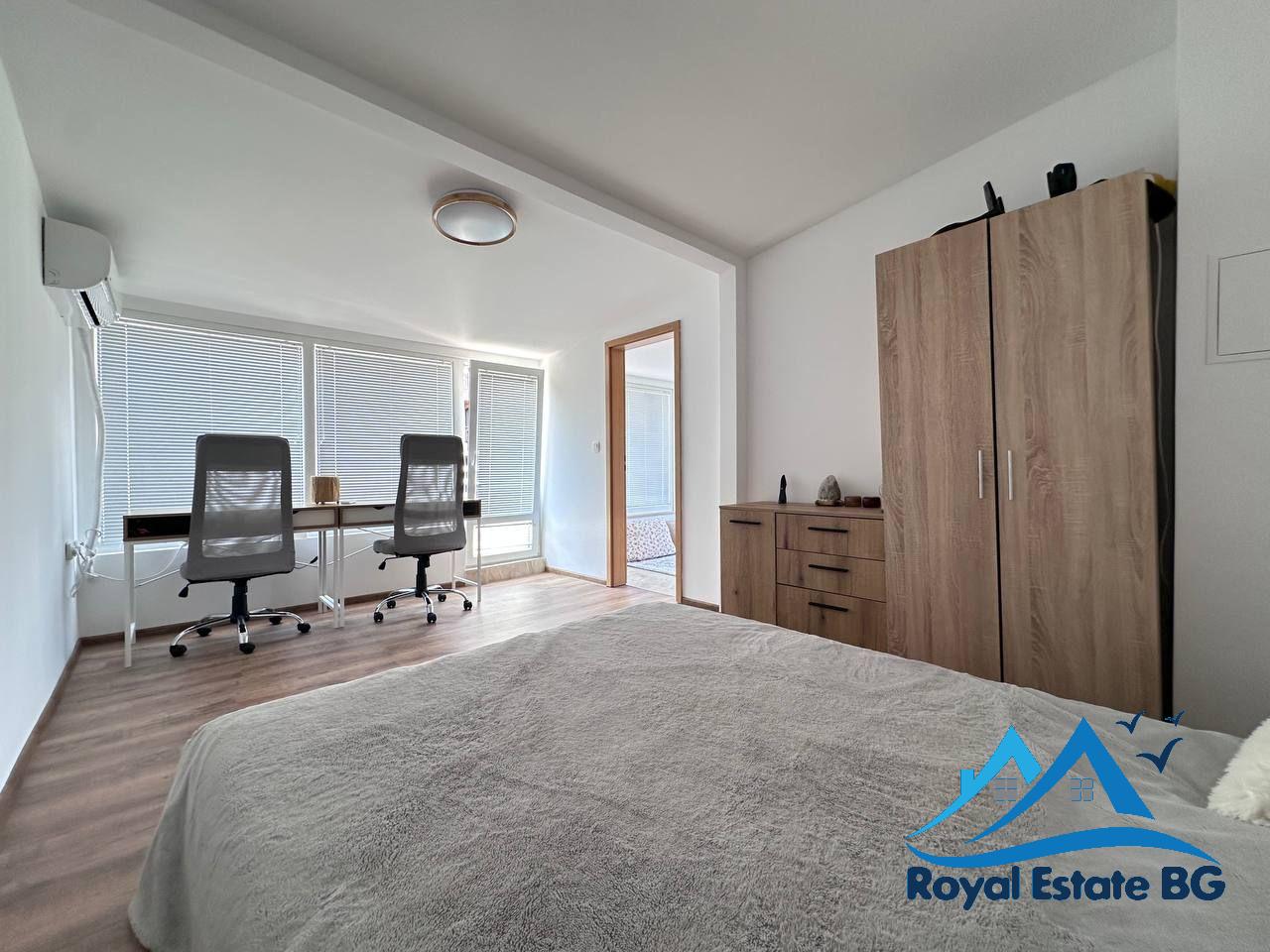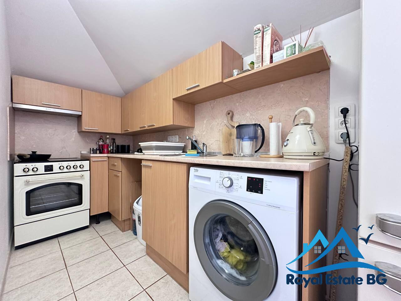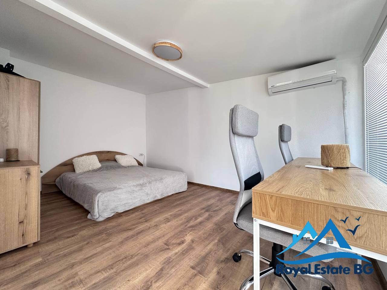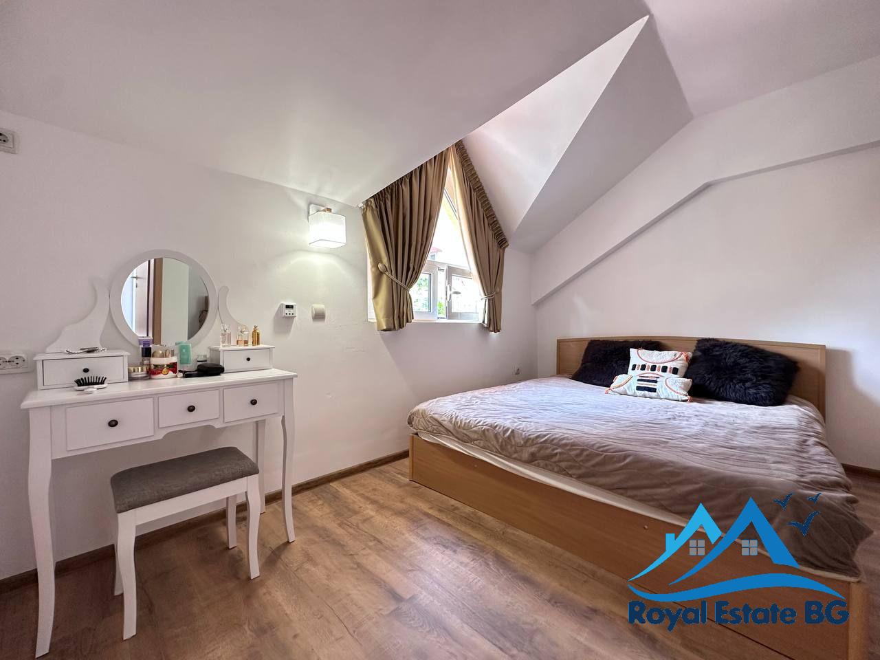 Апартаментът е напълно обзаведен, в отлично поддържано състояние и стилно оформен в модерен, функционален стил, характерен за интериорите тип Pinterest. Пространствата са светли, комфортни и подходящи както за сезонно ползване, така и за постоянно живеене.