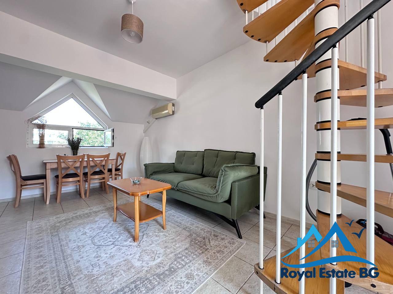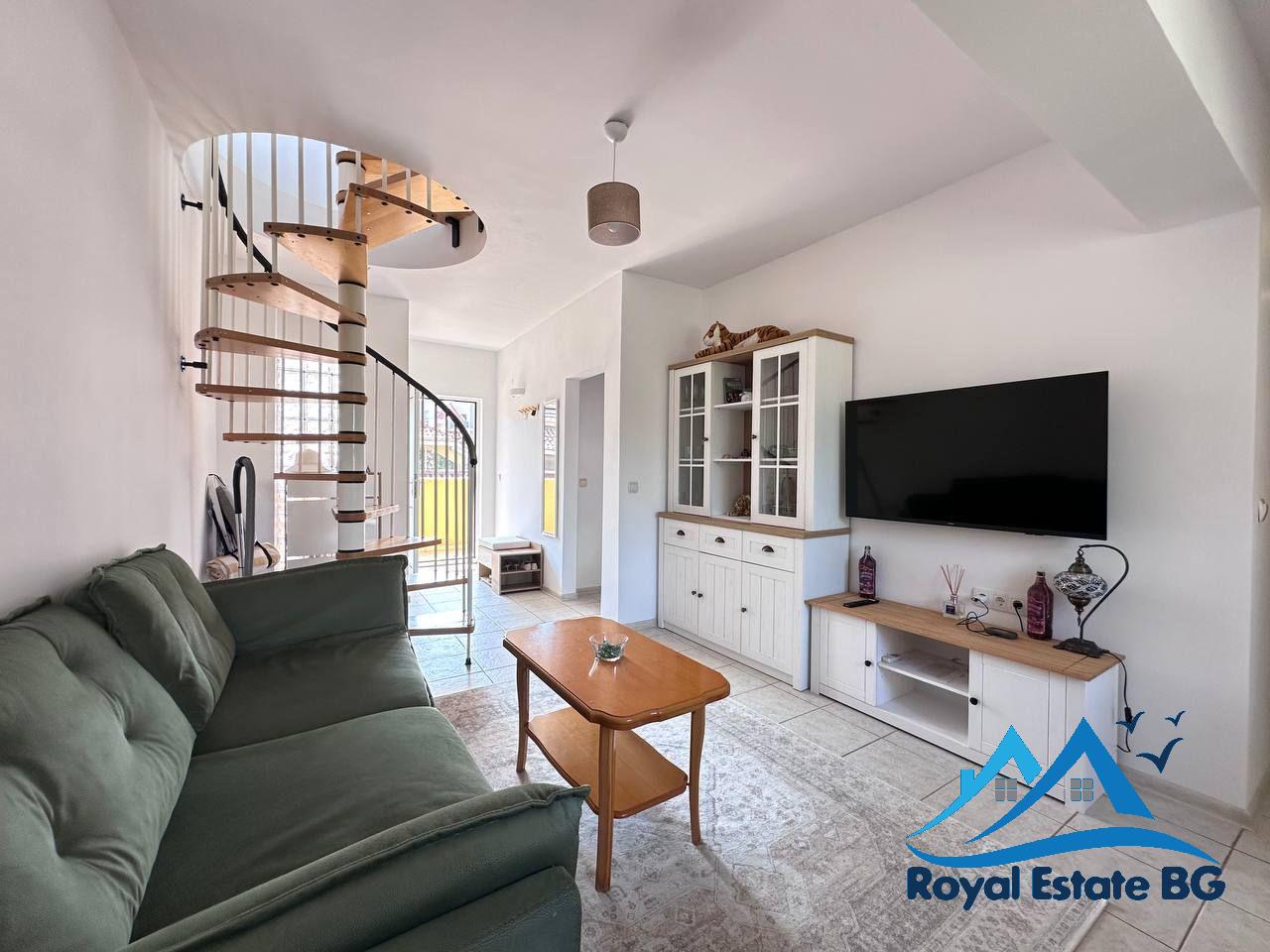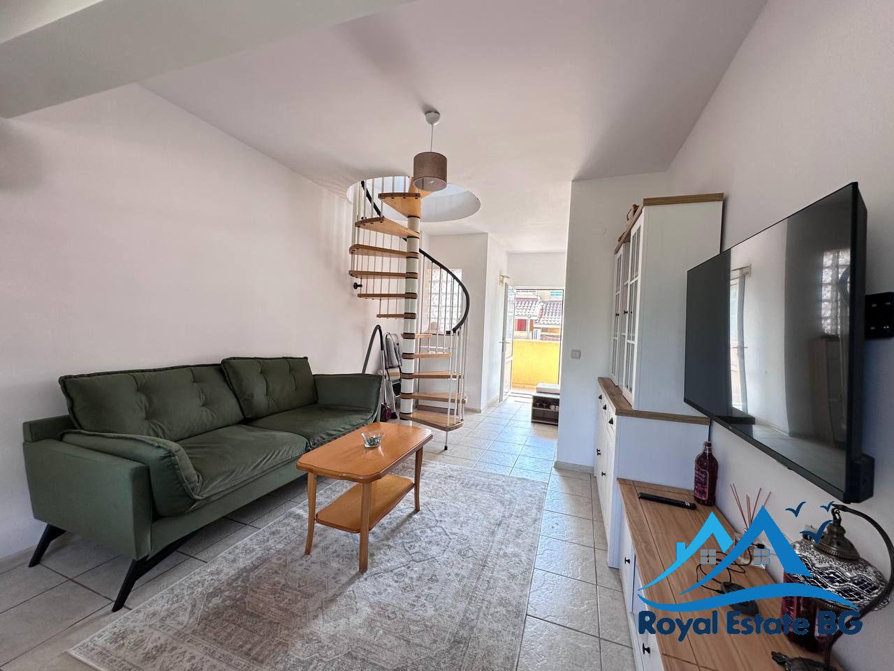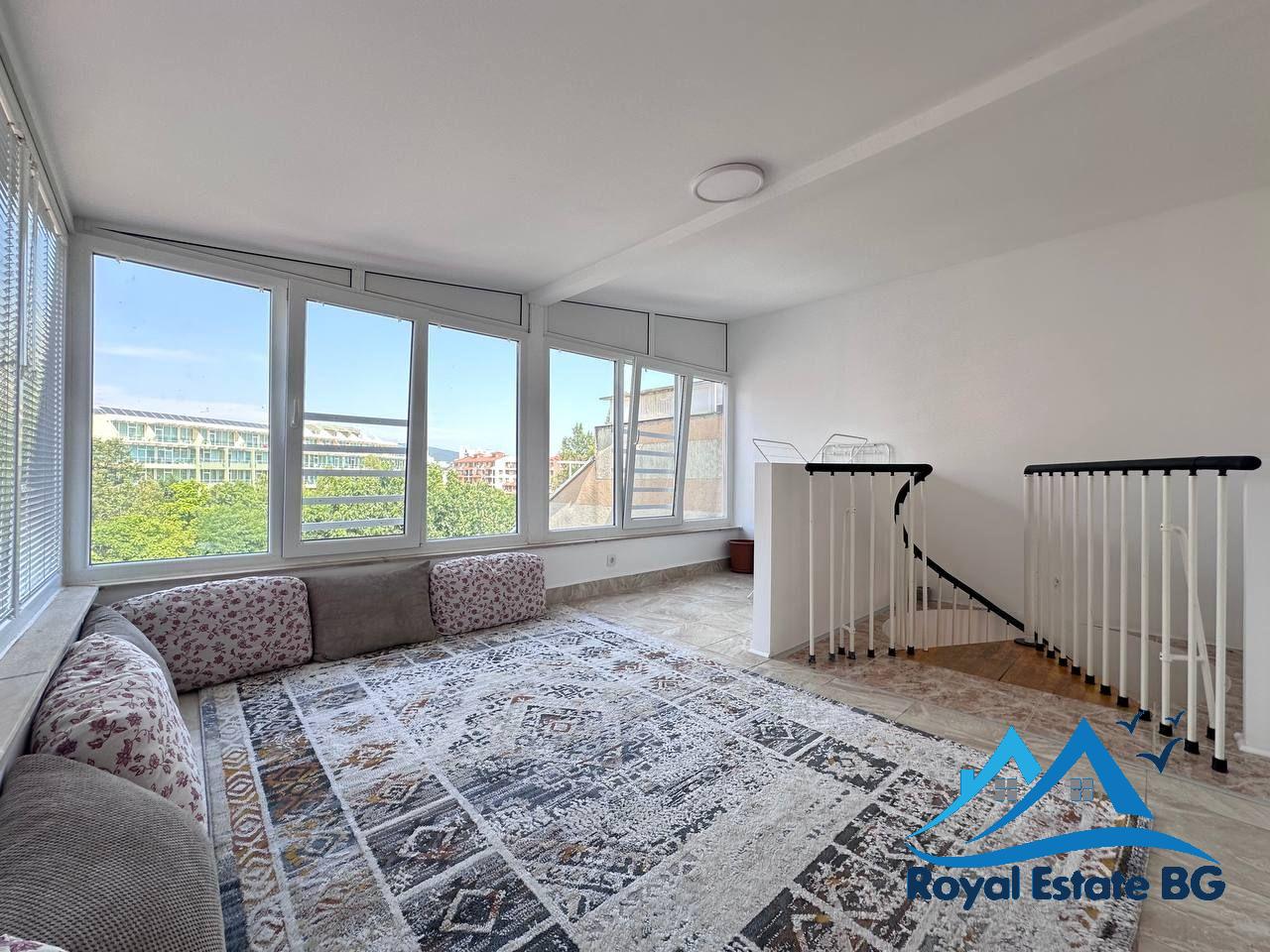 Предлагаме за продажба просторен тристаен мезонет, разположен на четвъртия етаж в уютния и добре поддържан комплекс „Робинзон“, в централната част на Слънчев бряг. Имотът е с отлична локация – само на 500 метра от морския бряг, в зона с развита инфраструктура и удобства за целогодишно живеене.