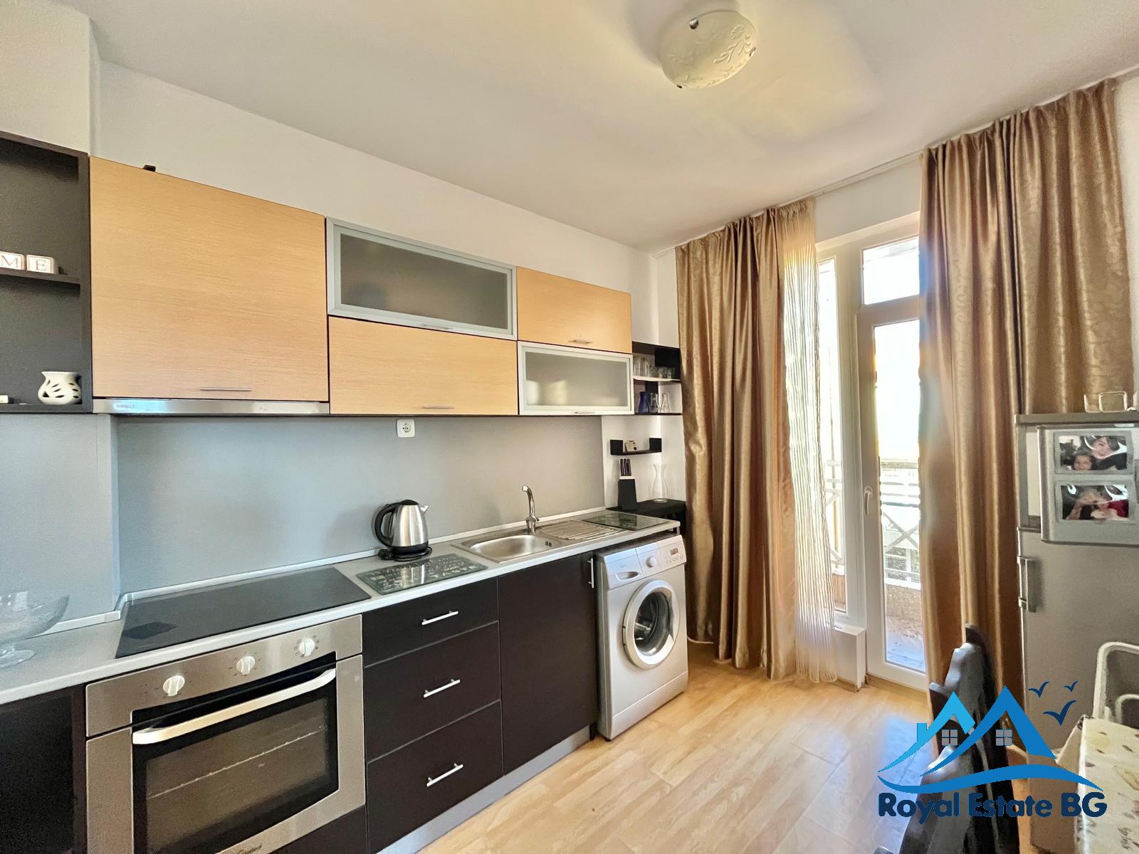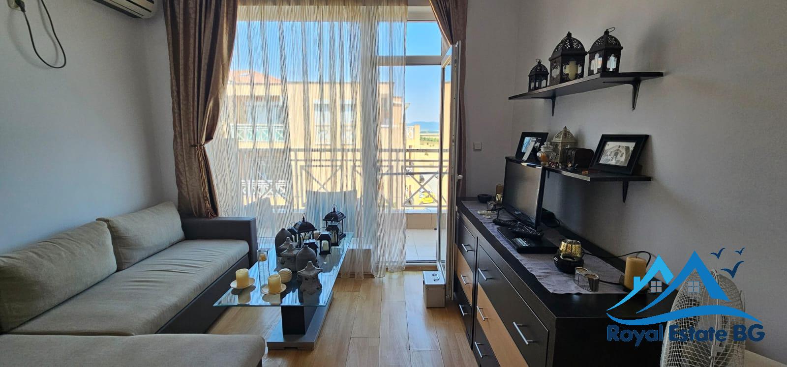 Предлагаем на продажу просторную и полностью меблированную трехкомнатную квартиру в популярном и ухоженном комплексе, всего в нескольких минутах езды от центра Солнечного Берега и моря.