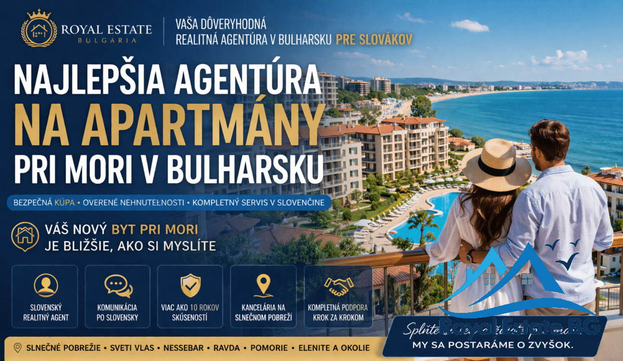 Úvod Hľadáte najlepšiu realitnú agentúru na apartmány pri mori v Bulharsku? Ak plánujete kúpu nehnuteľnosti pri mori, pravdepodobne ste už narazili na desiatky ponúk, agentúr a rôznych „výhodných“ ponúk. Ako sa však zorientovať a vybrať tú správnu agentúru, ktorá vám pomôže bezpečne kúpiť byt v Bulharsku? Tento odborný sprievodca vám vysvetlí: Ak ste Slovák a…