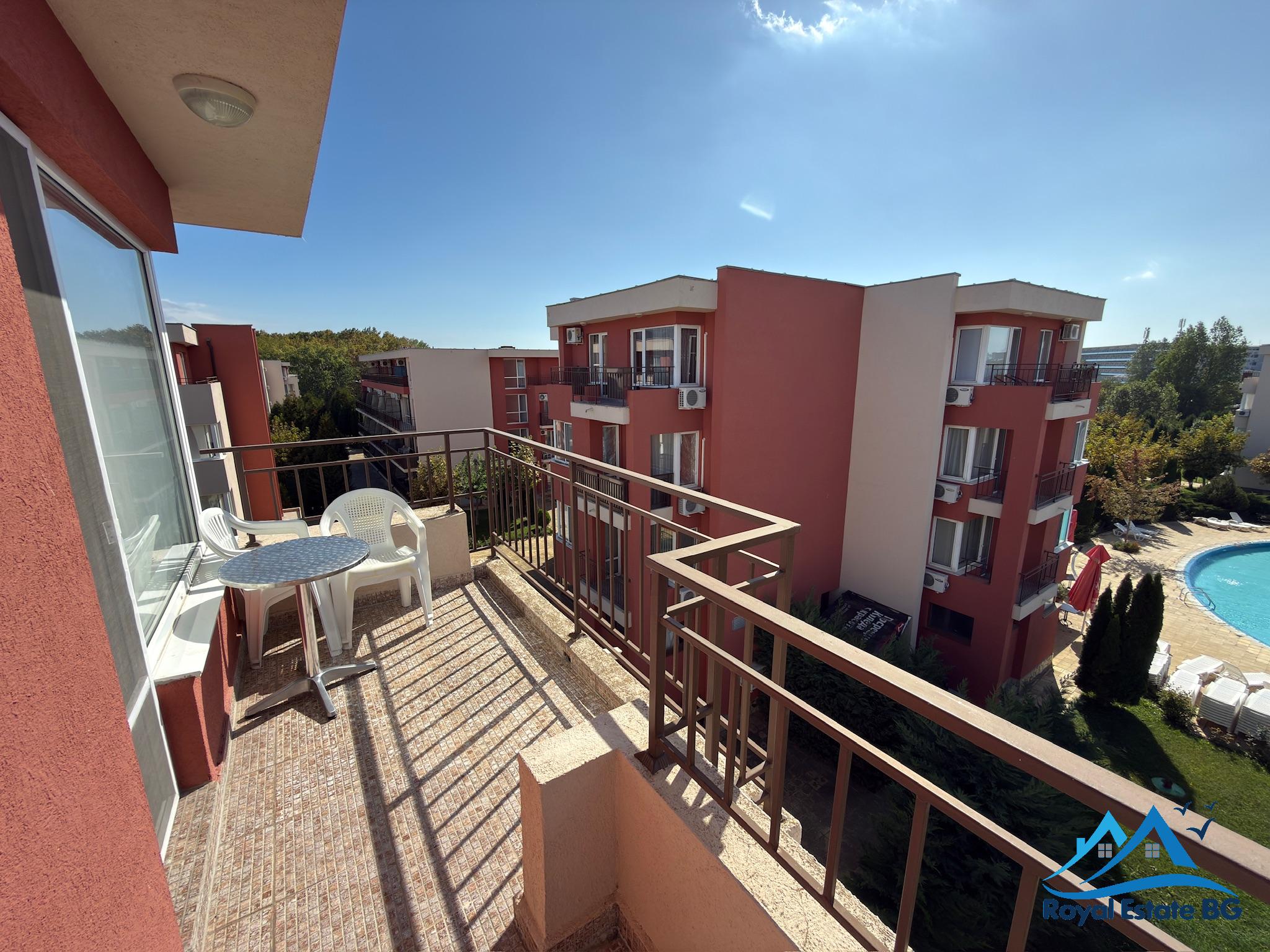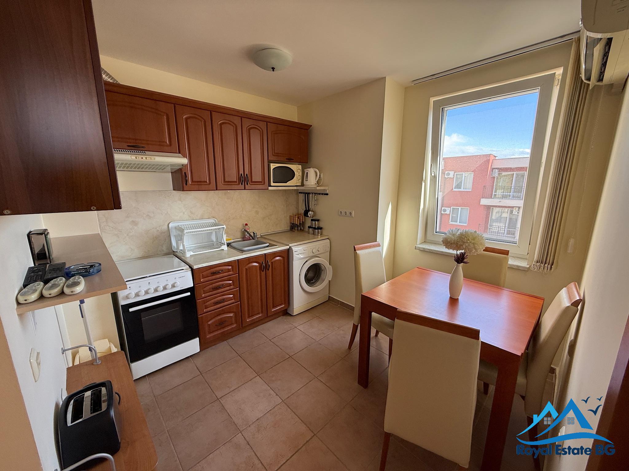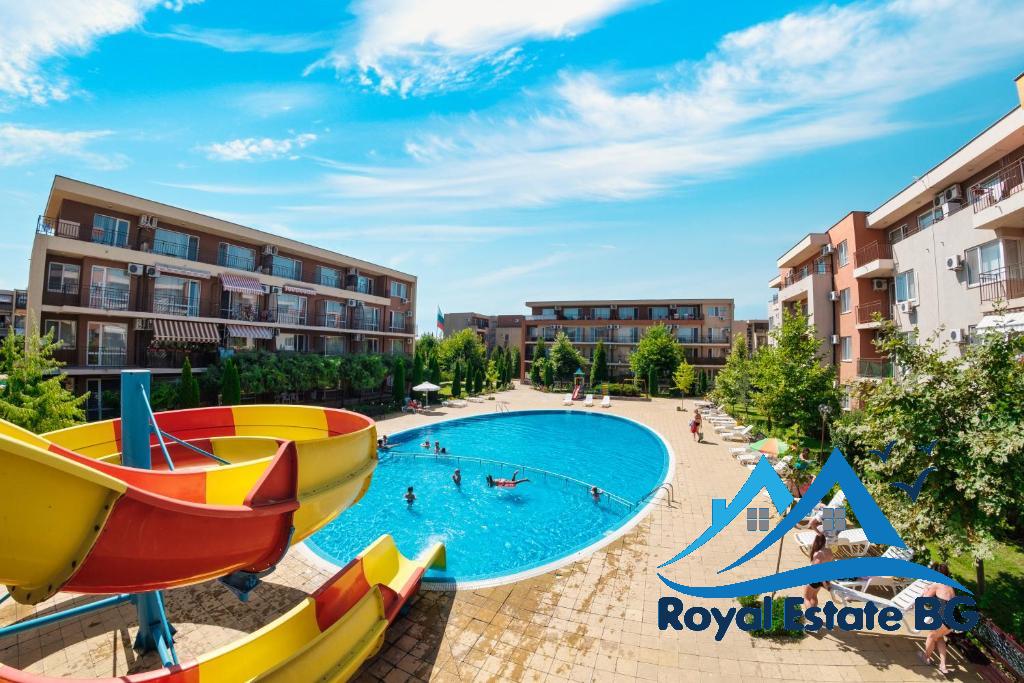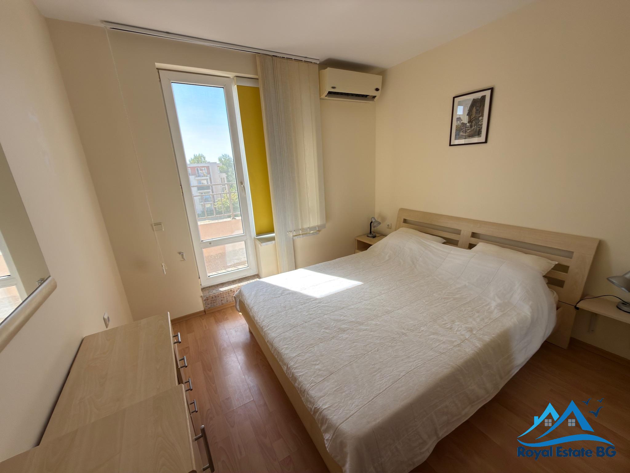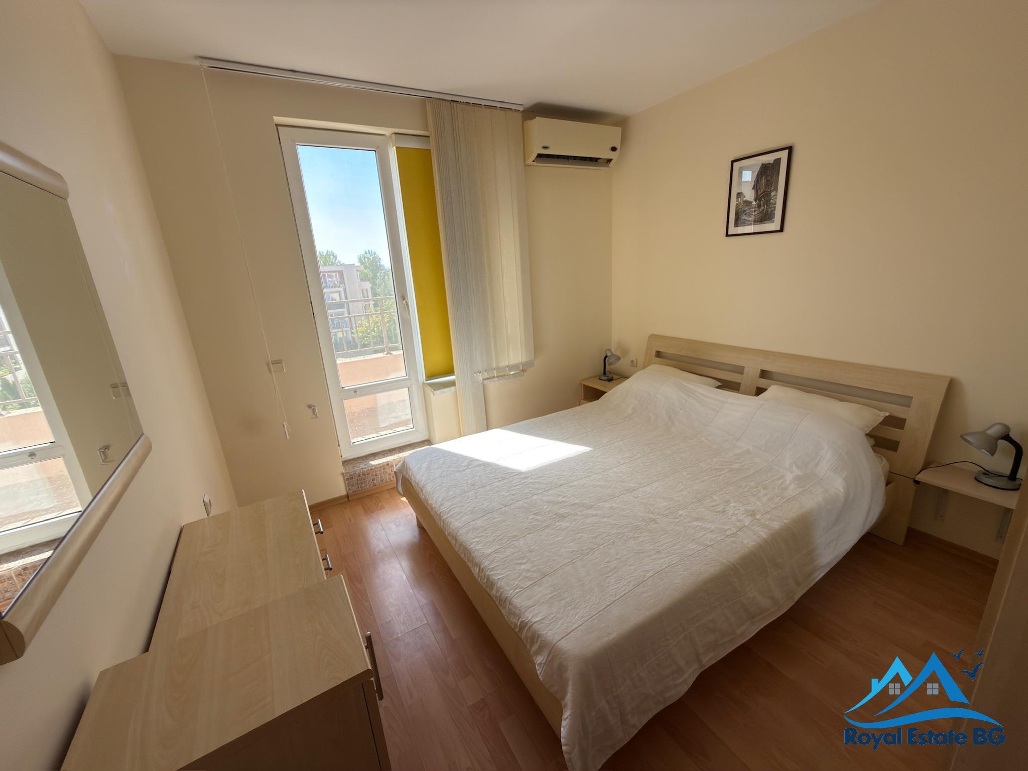 Ponúkame na predaj priestranný a kompletne zariadený 2-izbový apartmán, ktorý sa nachádza v komplexe Grand Kamelia v centrálnej časti letoviska Slnečné pobrežie.