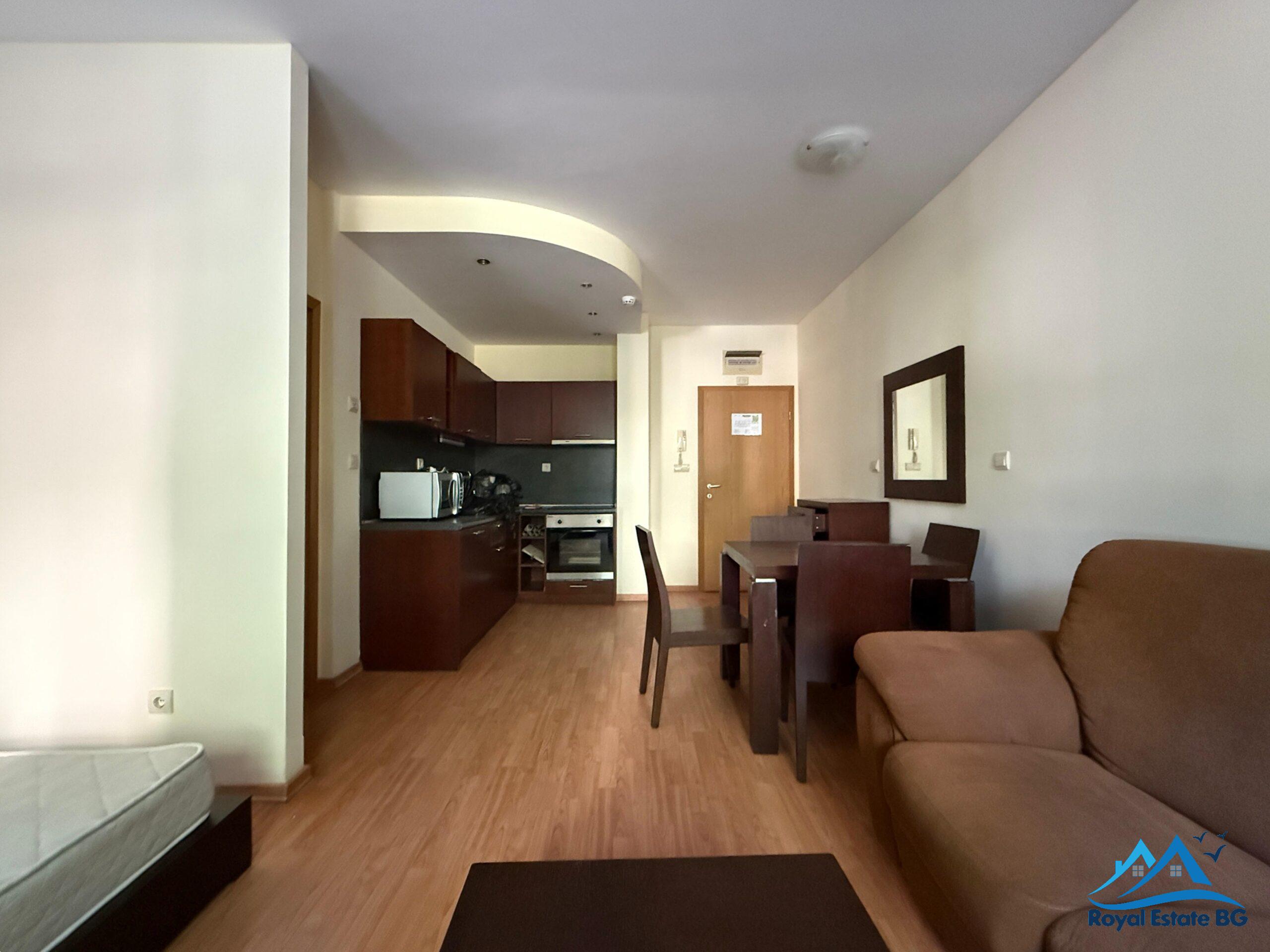 Vďaka svojej veľkosti patrí tento byt v Bulharsku pri mori medzi komfortné štúdiové apartmány vhodné aj na dlhší pobyt.