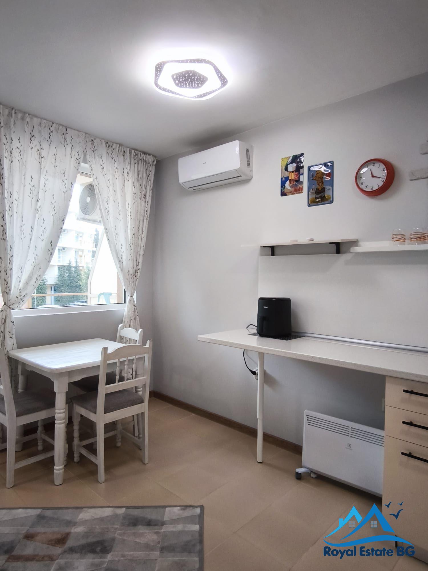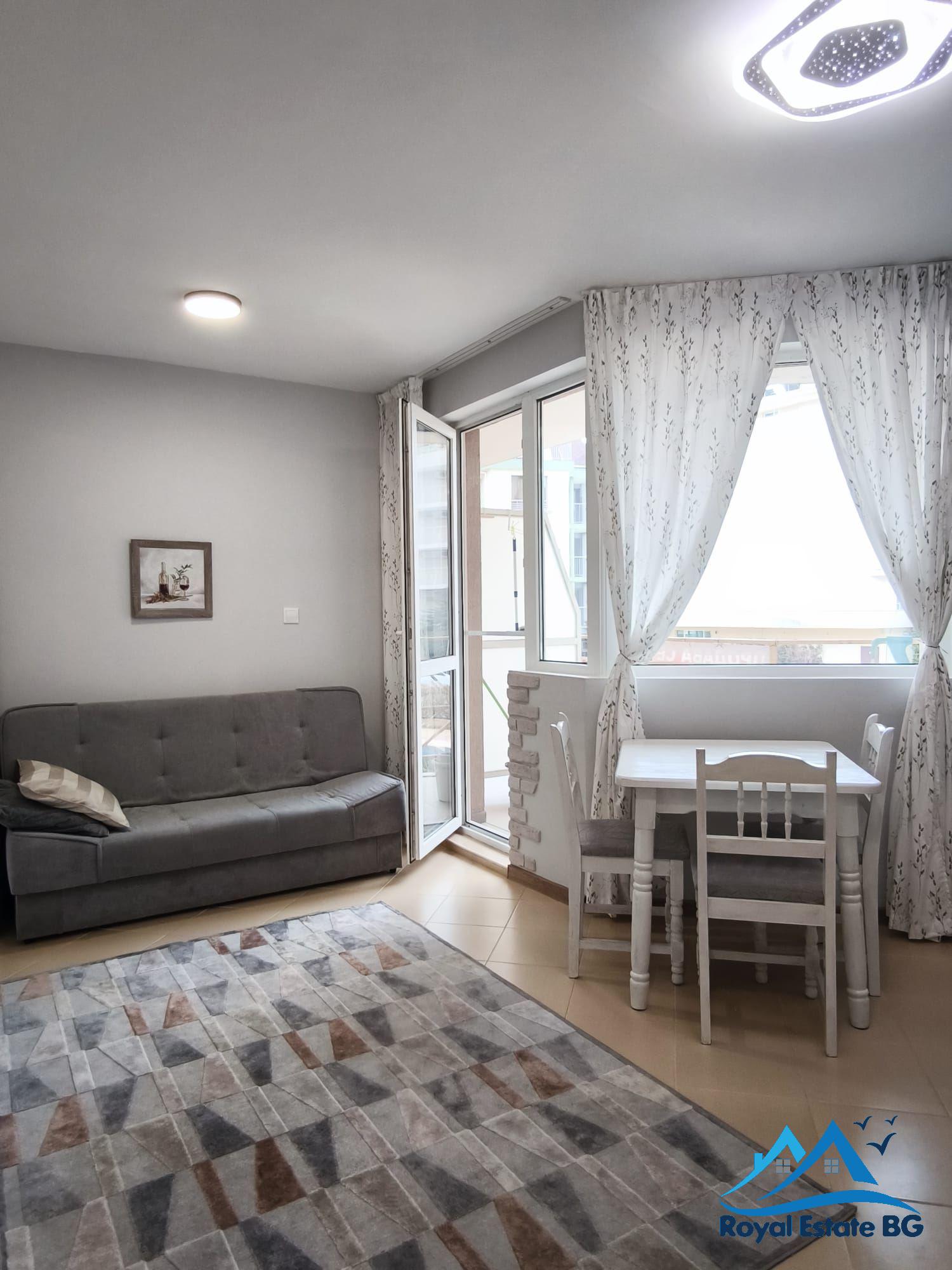 Royal Estate Bulgaria vám ponúka na predaj praktický a kompletne zariadený 2-izbový apartmán v obľúbenom letovisku Slnečné pobrežie. Táto nehnuteľnosť je ideálnou voľbou pre klientov, ktorí hľadajú apartmán v Bulharsku na vlastné využitie, rekreačné bývanie alebo ako investíciu na prenájom. Byt je po rekonštrukcii, pripravený na okamžité nasťahovanie a ponúka výhodu, ktorú kupujúci veľmi oceňujú – bezplatné parkovacie miesto priamo k nehnuteľnosti.
