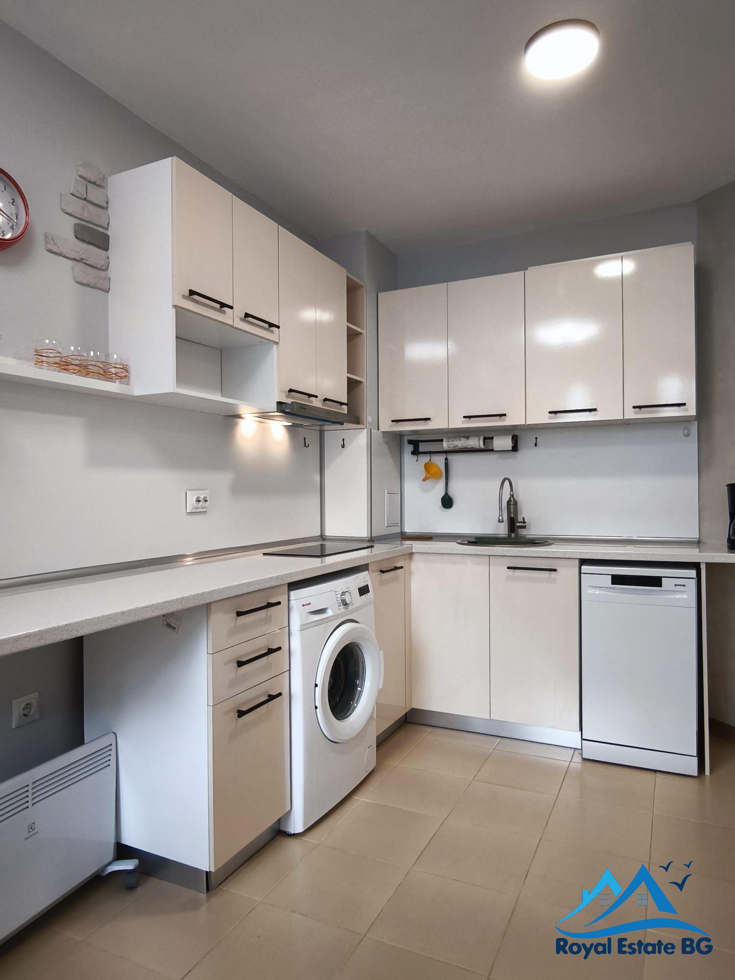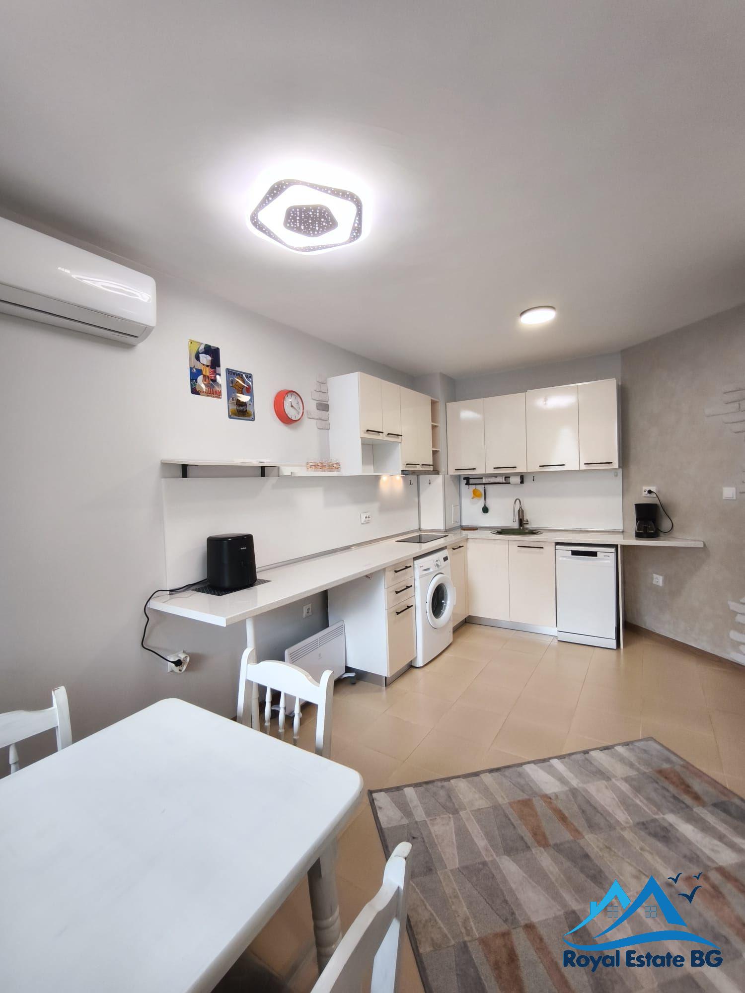 Ponúkaný byt v Bulharsku pri mori má funkčné dispozičné riešenie, ktoré vyhovuje párom, menším rodinám aj investorom. Apartmán je po rekonštrukcii, kompletne zariadený a pripravený na okamžité používanie bez potreby ďalších stavebných úprav.