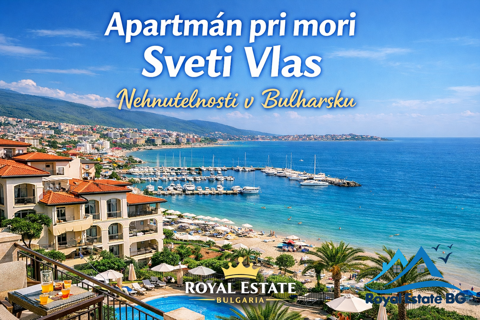 Realitná agentúra Royal Estate Bulgaria sa už viac ako 10 rokov špecializuje na predaj nehnuteľností pri mori Bulharsko pre slovenských klientov. Okrem toho poskytuje kompletný servis v slovenskom jazyku. Klientom pomáha slovenská maklérka, ktorá hovorí perfektne po slovensky a sprevádza ich celým procesom kúpy.